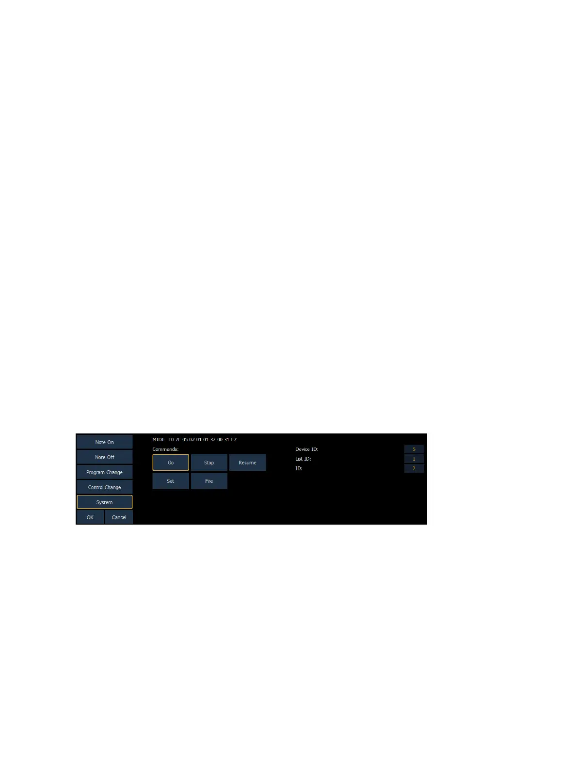 System commands allow you to specify specific MIDI Show Control messages that can be received