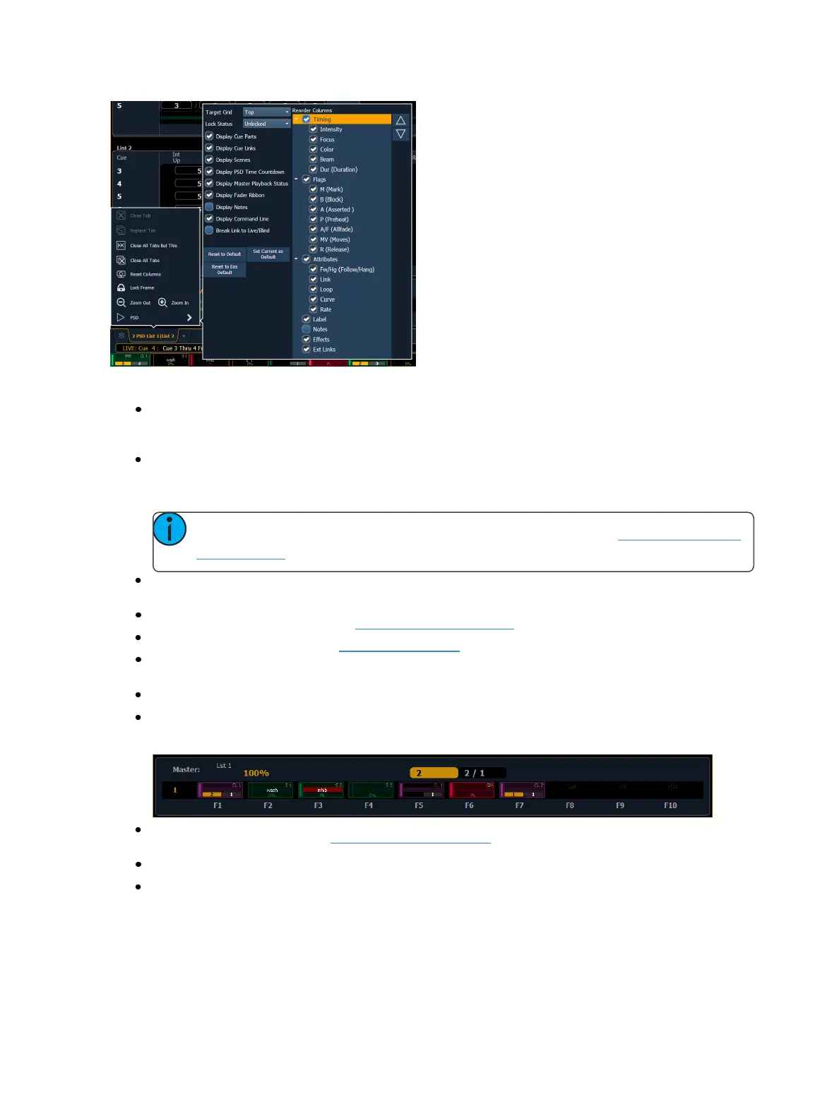 Note: Phantom cue lists will display but cannot be locked to. See Cue List Properties
