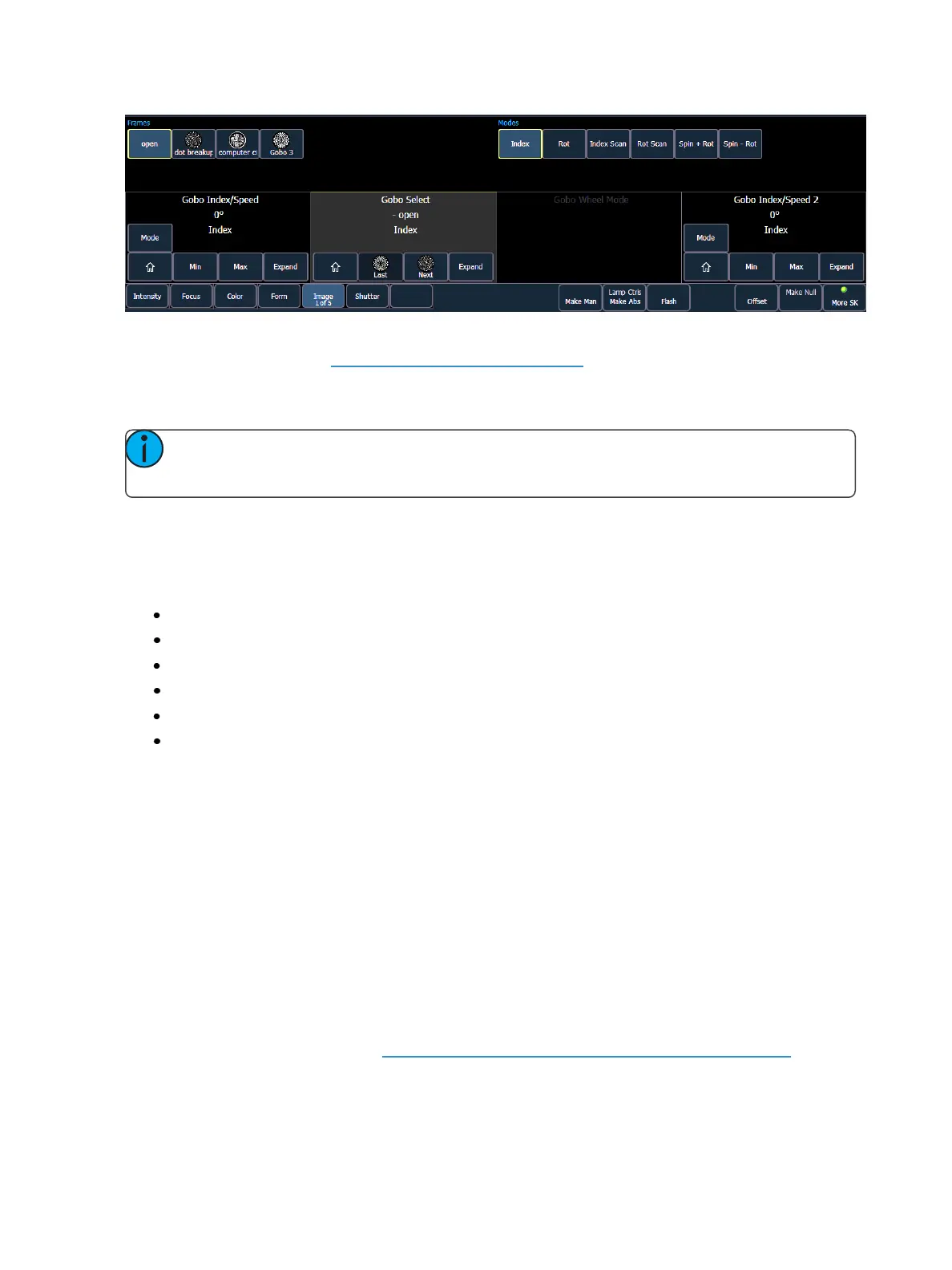 gobo wheel. If additional modes are available, their softkeys will display at the top of the encoder con-
