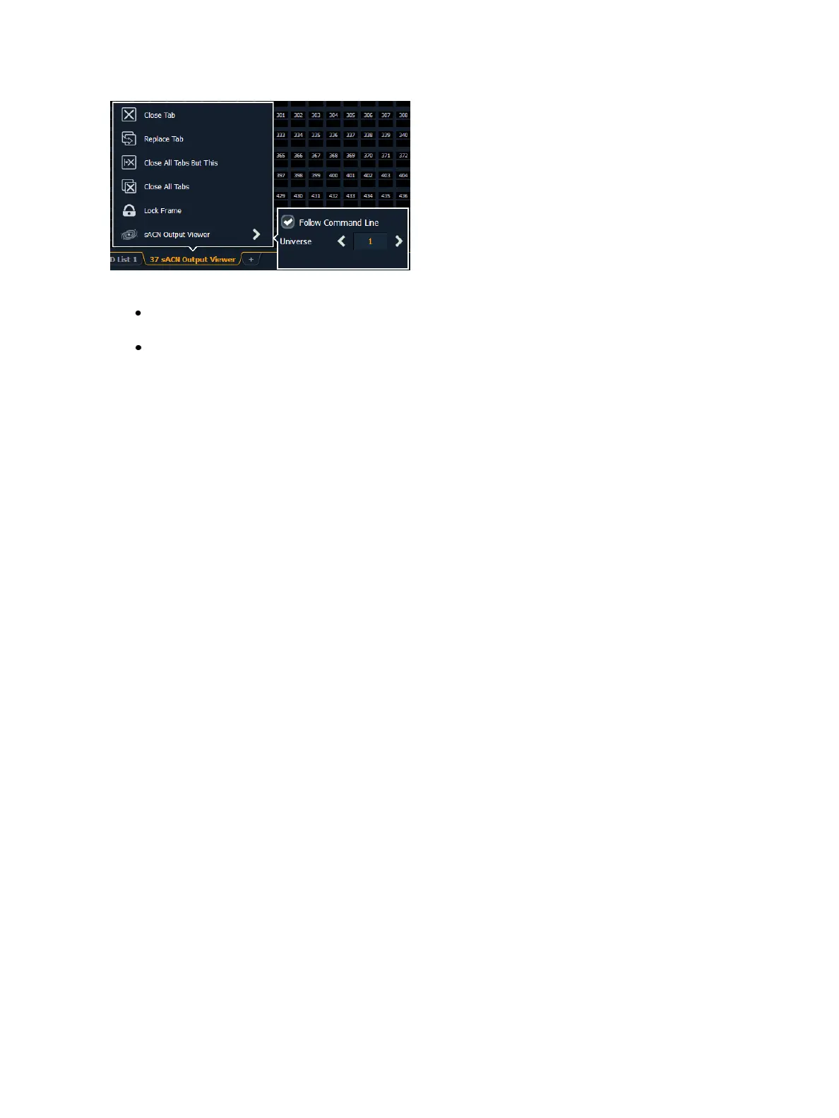 Universe - you can select which universe to jump the viewer to.