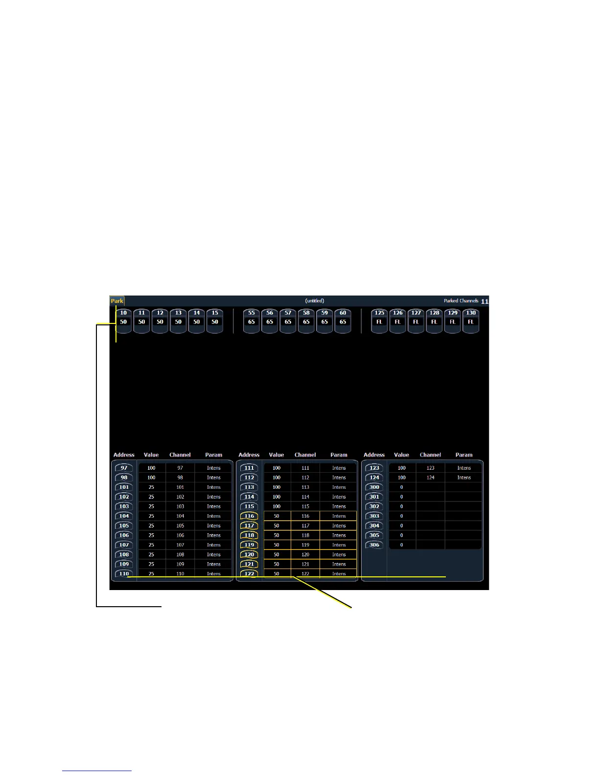 You can park and unpark channel parameters or addresses from the park display. Open the display