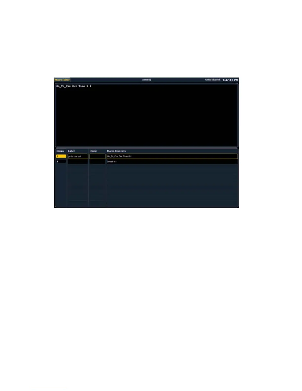 The display is divided horizontally, the top portion displays the macro contents in detail while the
