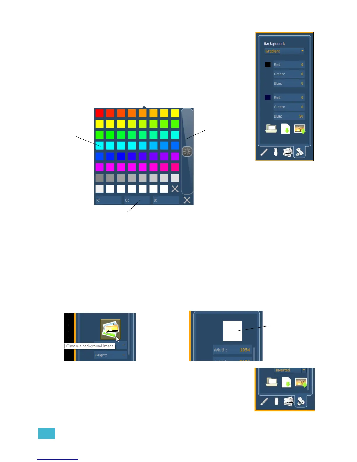 You can select or import an image directly from this tab by pressing the choose a background image
