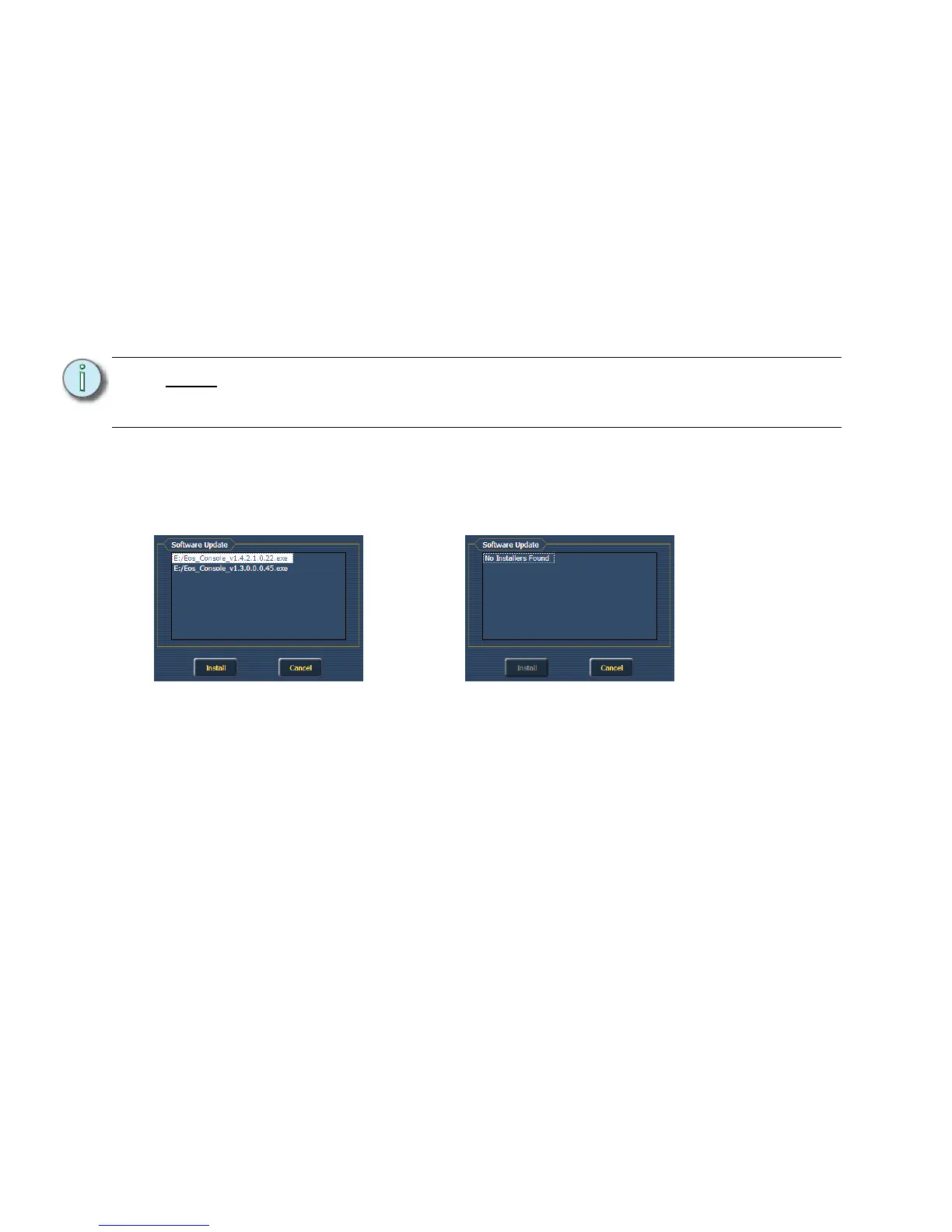 Software Update allows the installation of Eos Family Software and other ETC-approved software
