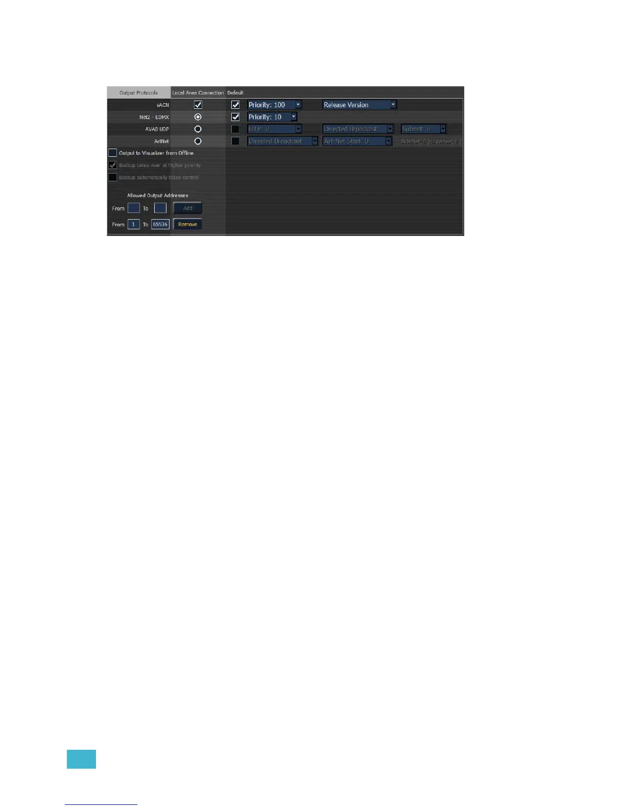 This sets the control priority for ACN data from this desk. The valid range for this setting is 1 (lowest)