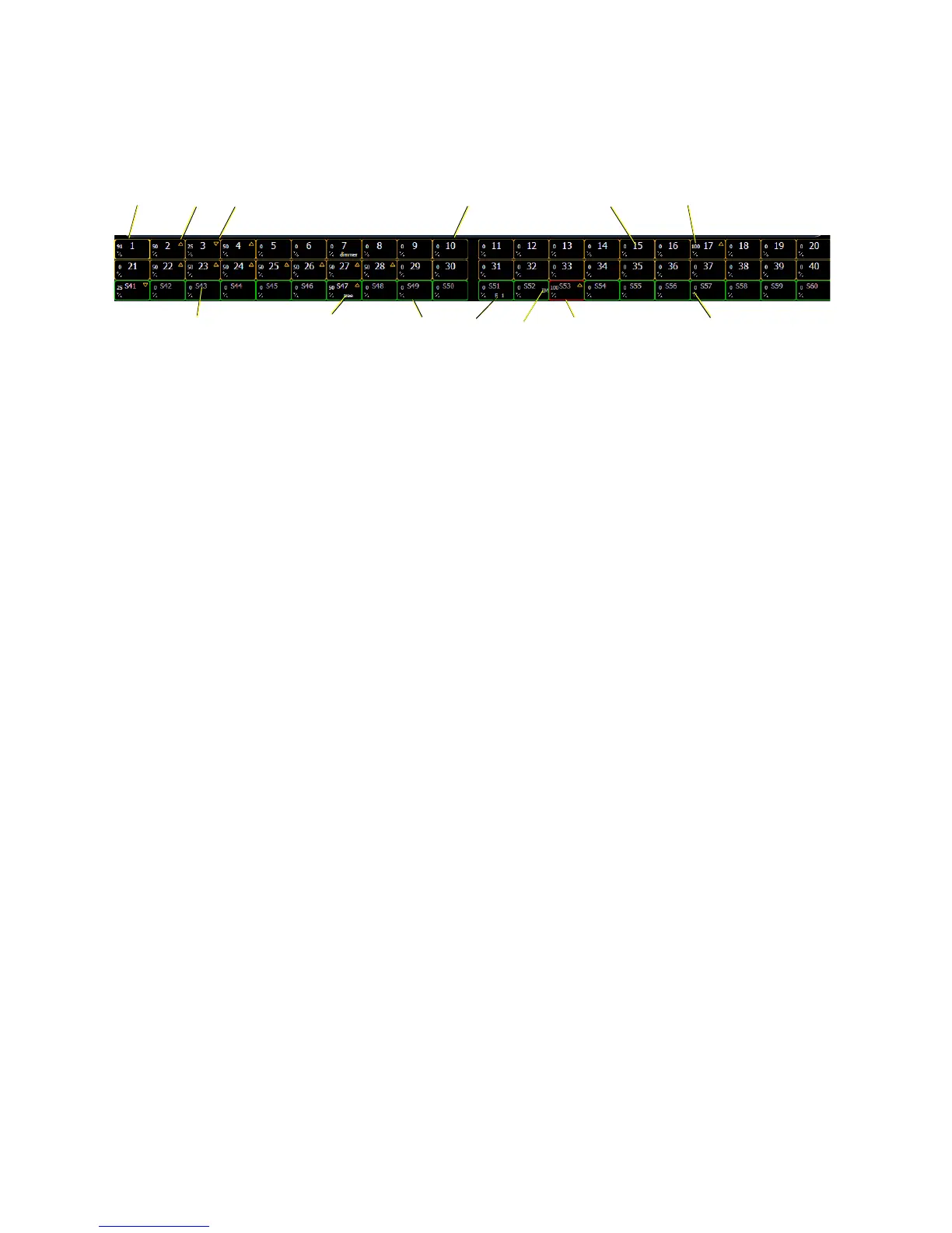 • 1 . . . . . . . . . . . . . . . . . . .Amber box indicates a channel fader.