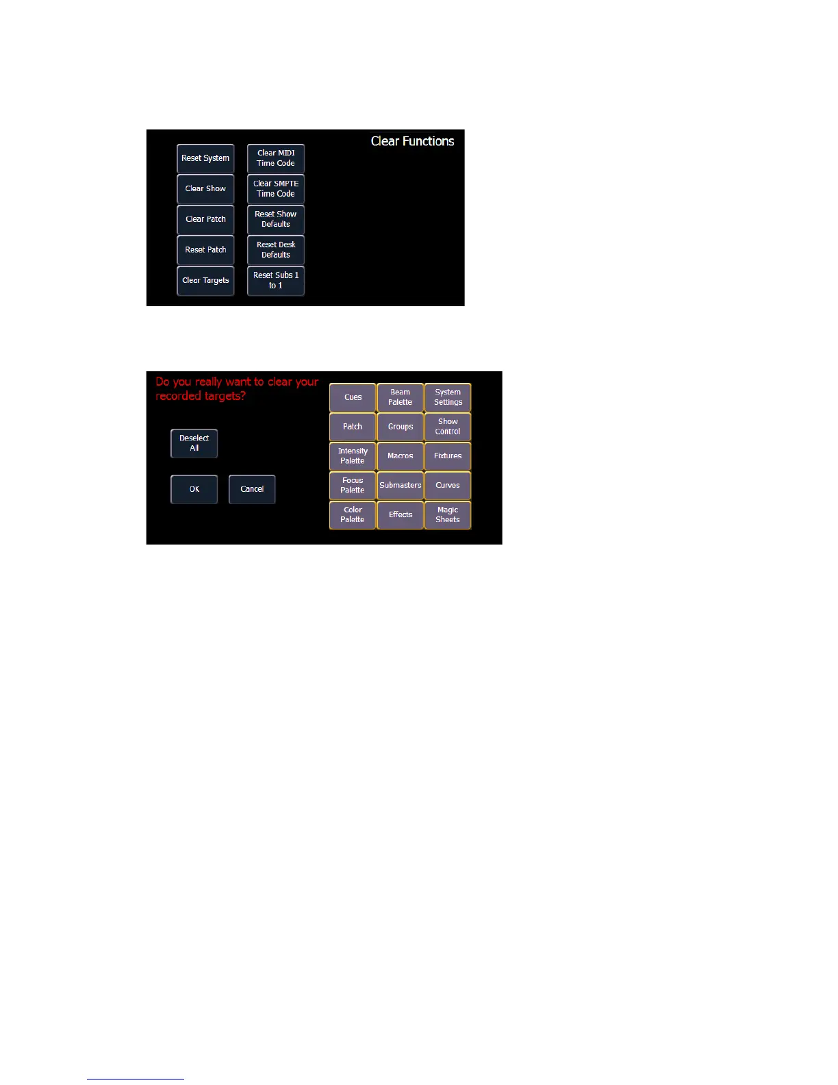 From the {Clear Targets} screen you can select which record targets you wish to clear. The buttons