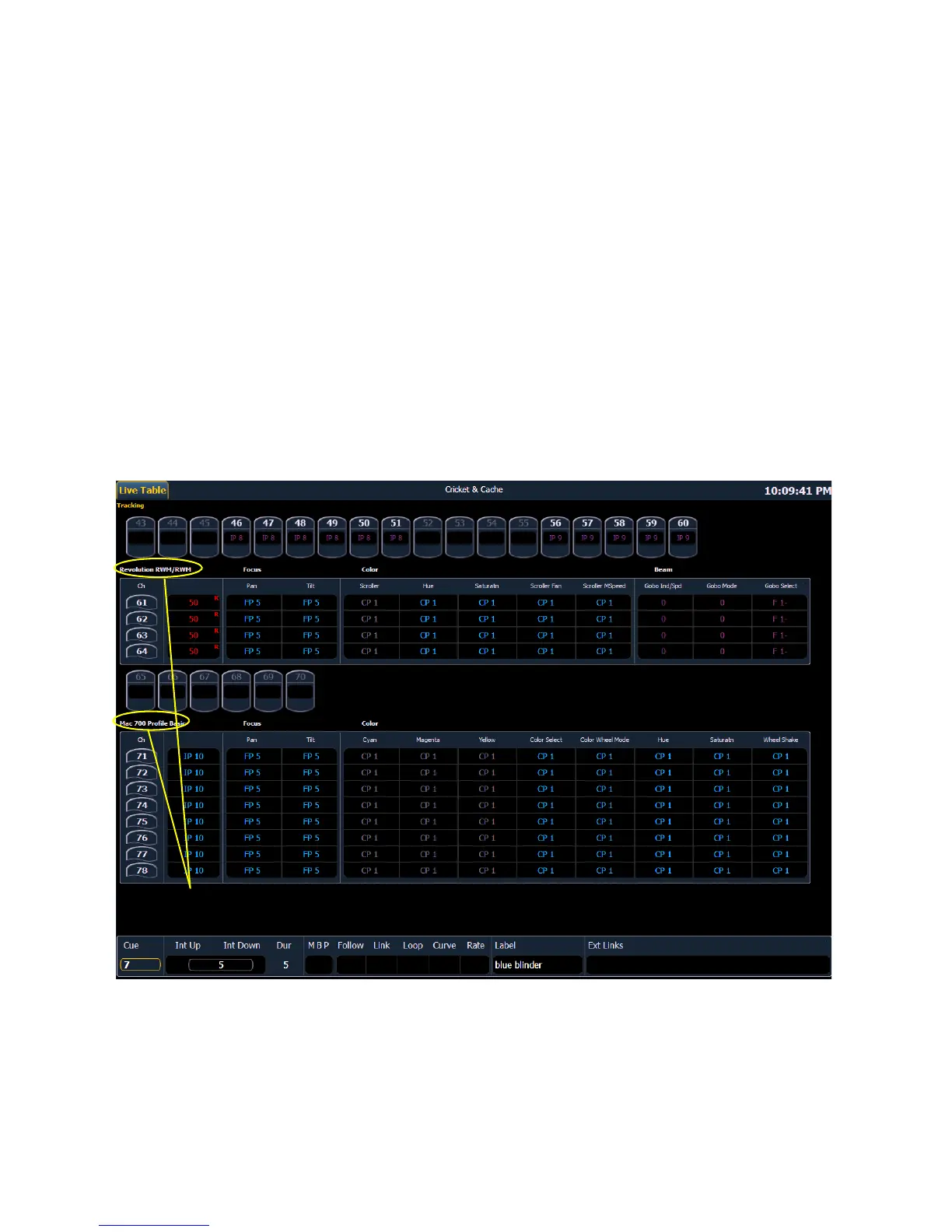 In live, table view displays all active channel data being output from Element. In blind, it will display