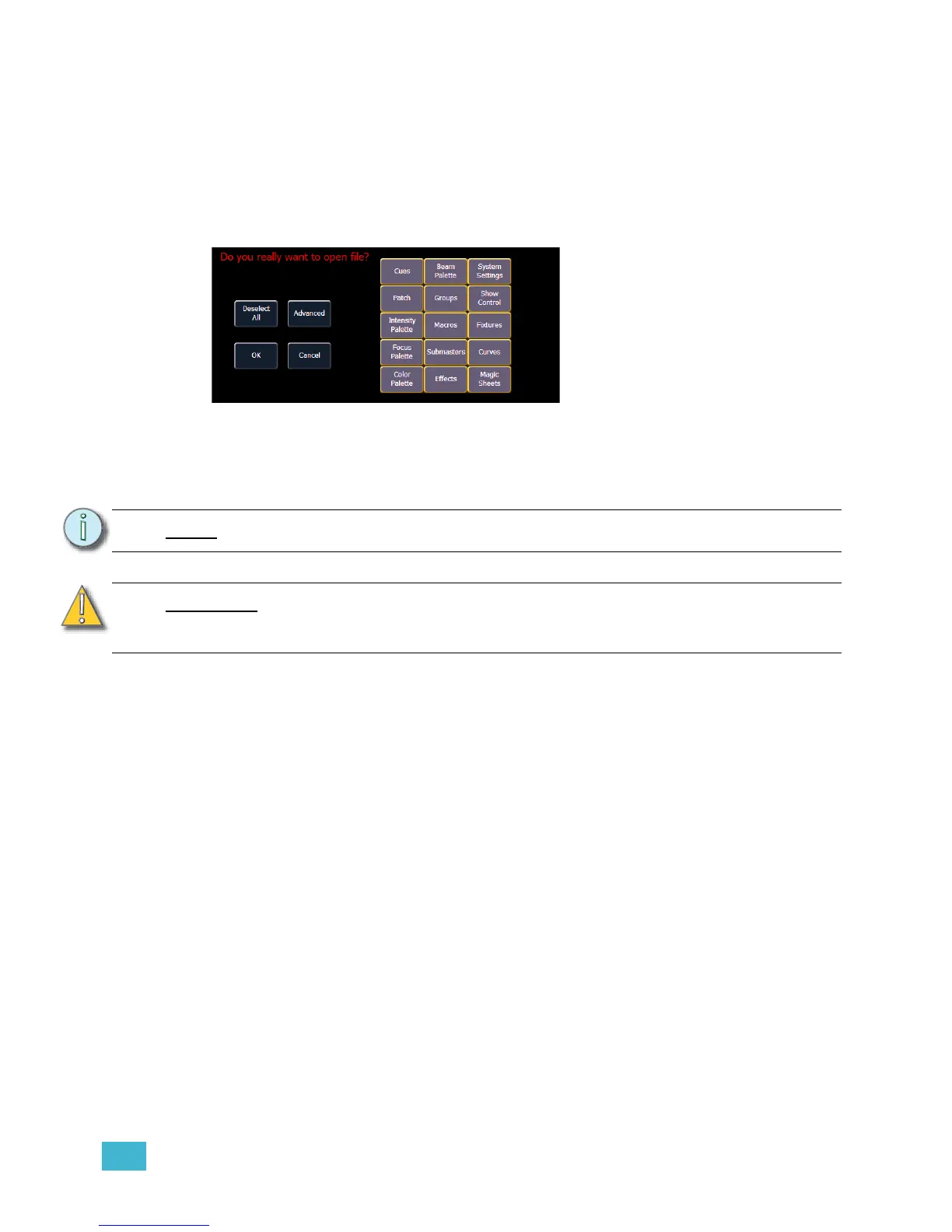 From this screen you can select which components of the show file you wish to load. The buttons