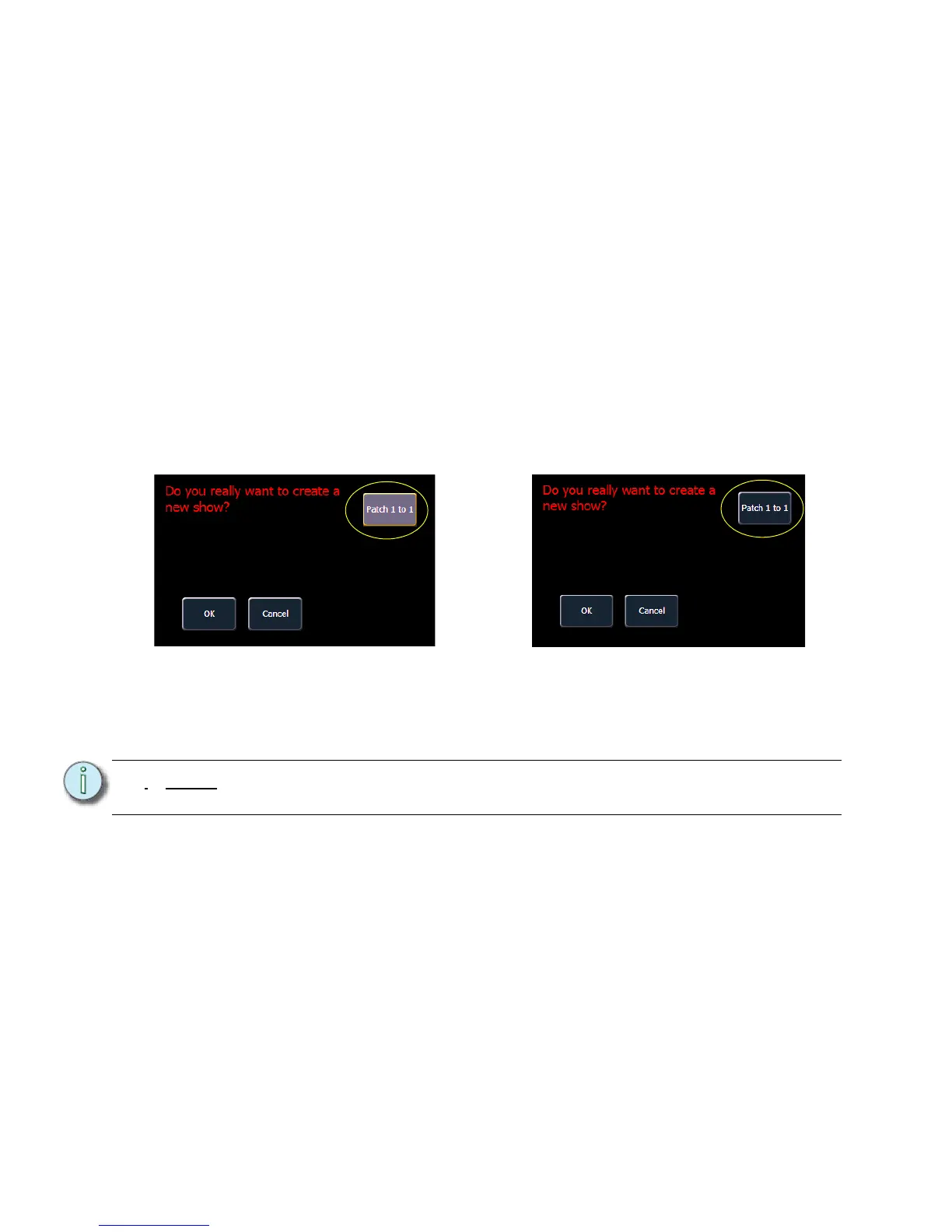 When you open a new show file, Element creates a 1-to-1 patch. This means that the patch will