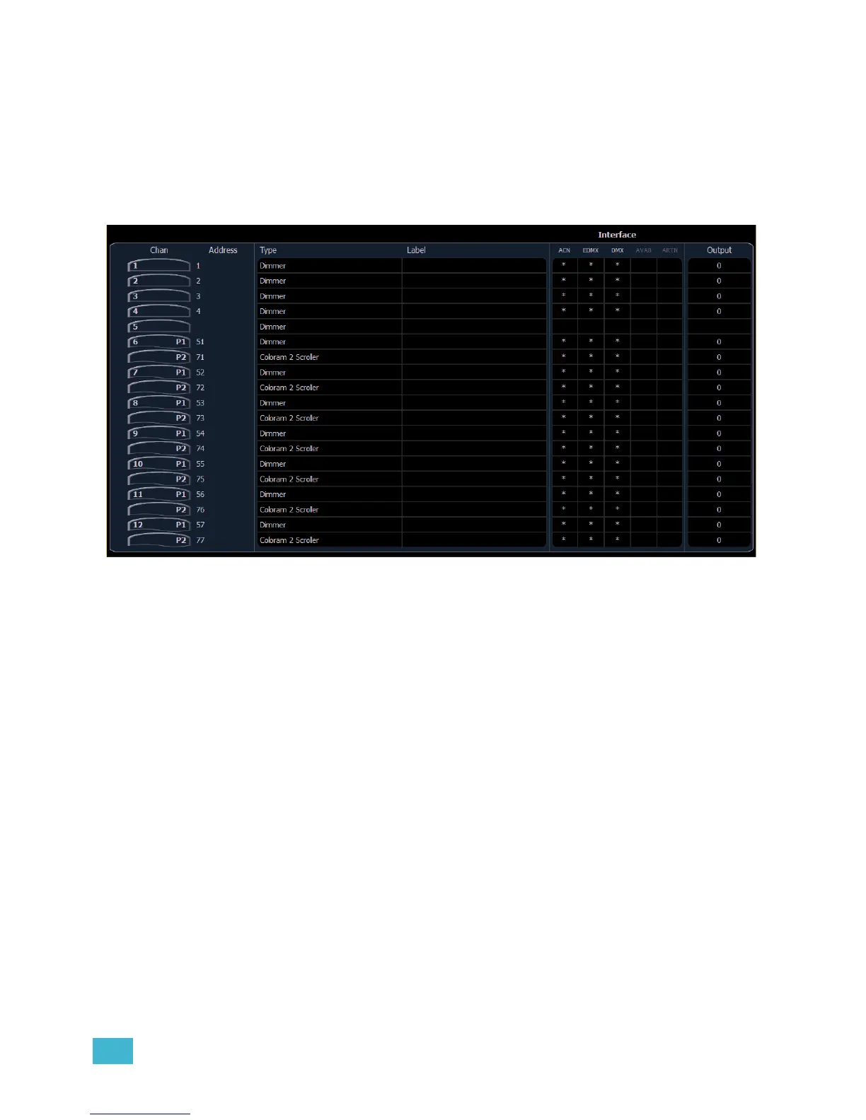• Type - device or dimmer type that is patched.