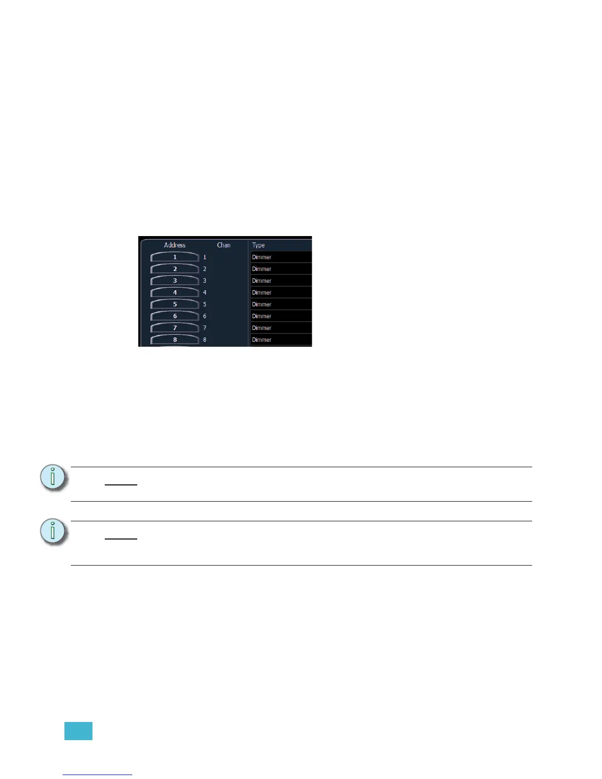 • [5] [At] [1][0][0] [Enter] - patches address 5 to channel 100.