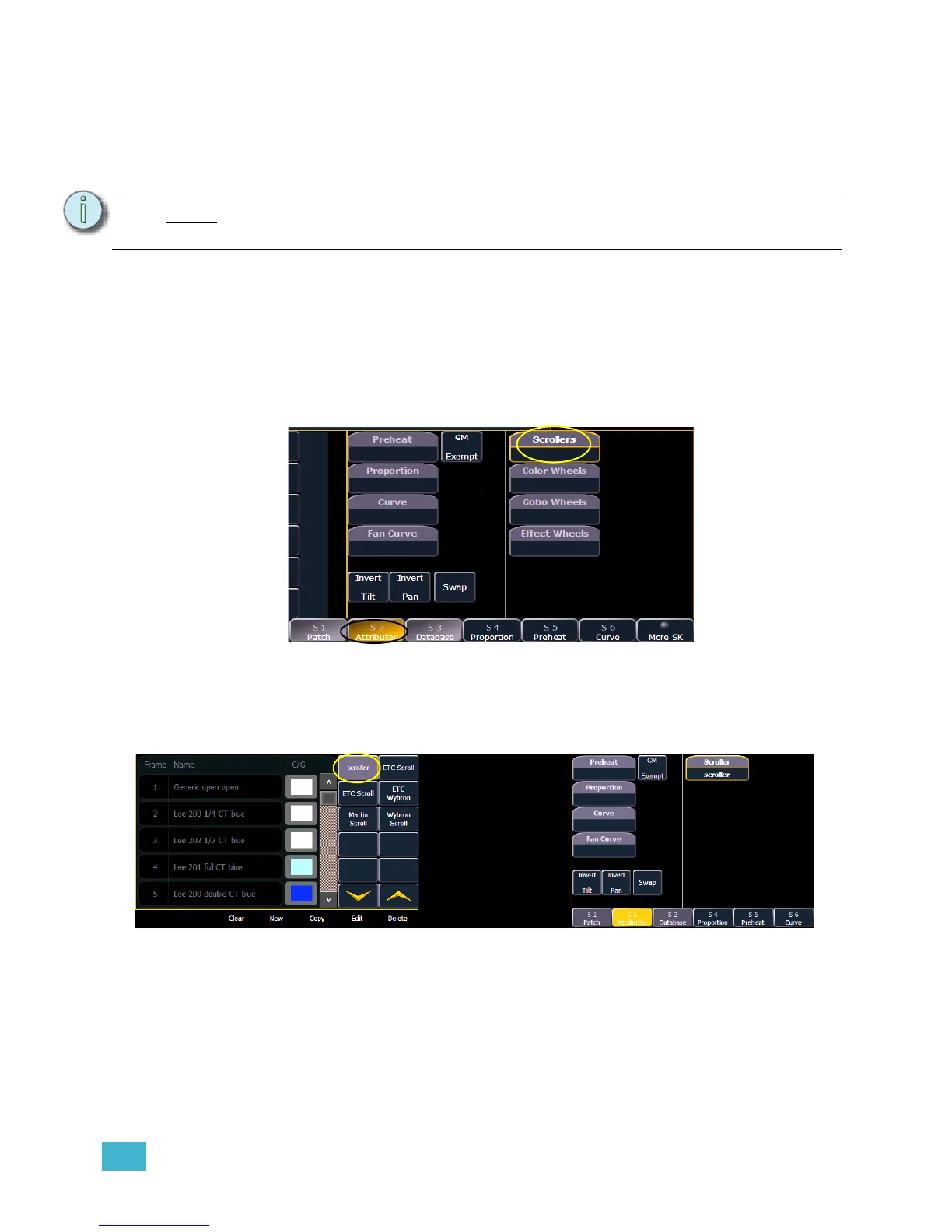 customized scrolls or wheels using the editor to match custom devices installed in your fixture.