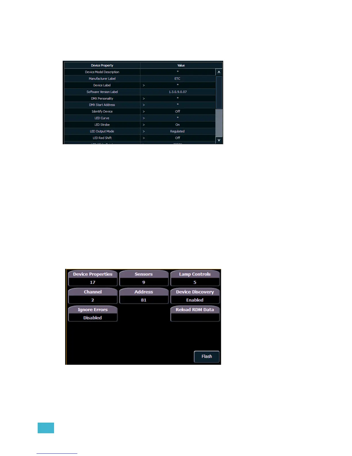 • {Flash} - triggers the identity function of the RDM device. The identity function may defer