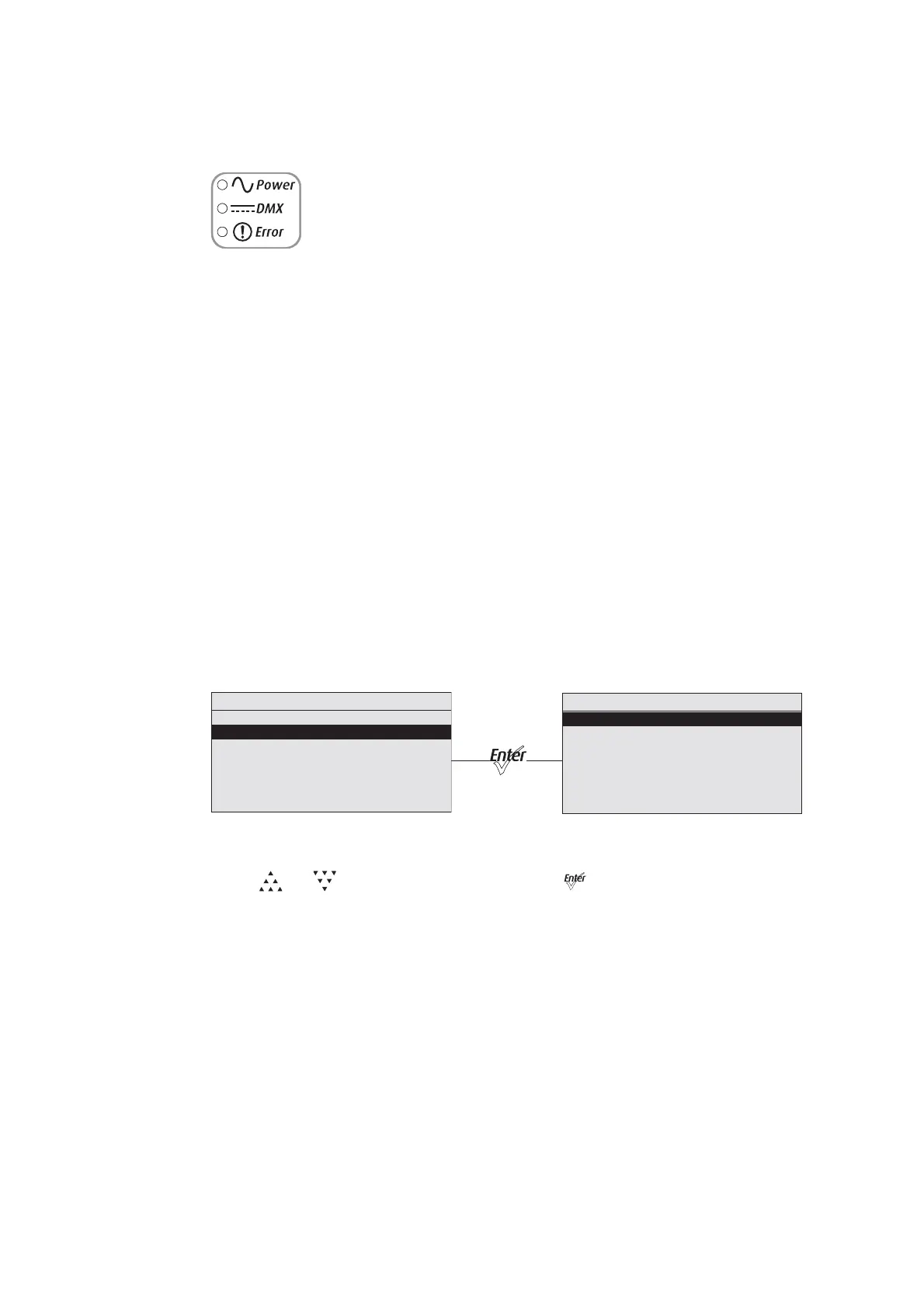 • DMX — Illuminates solid green when an active DMX signal is being received by the