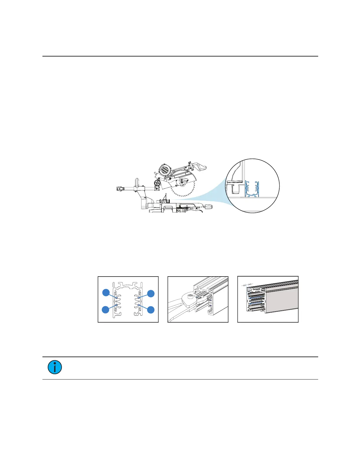 • ETC recommends using a power miter saw with appropriate metal blade to cut the track.