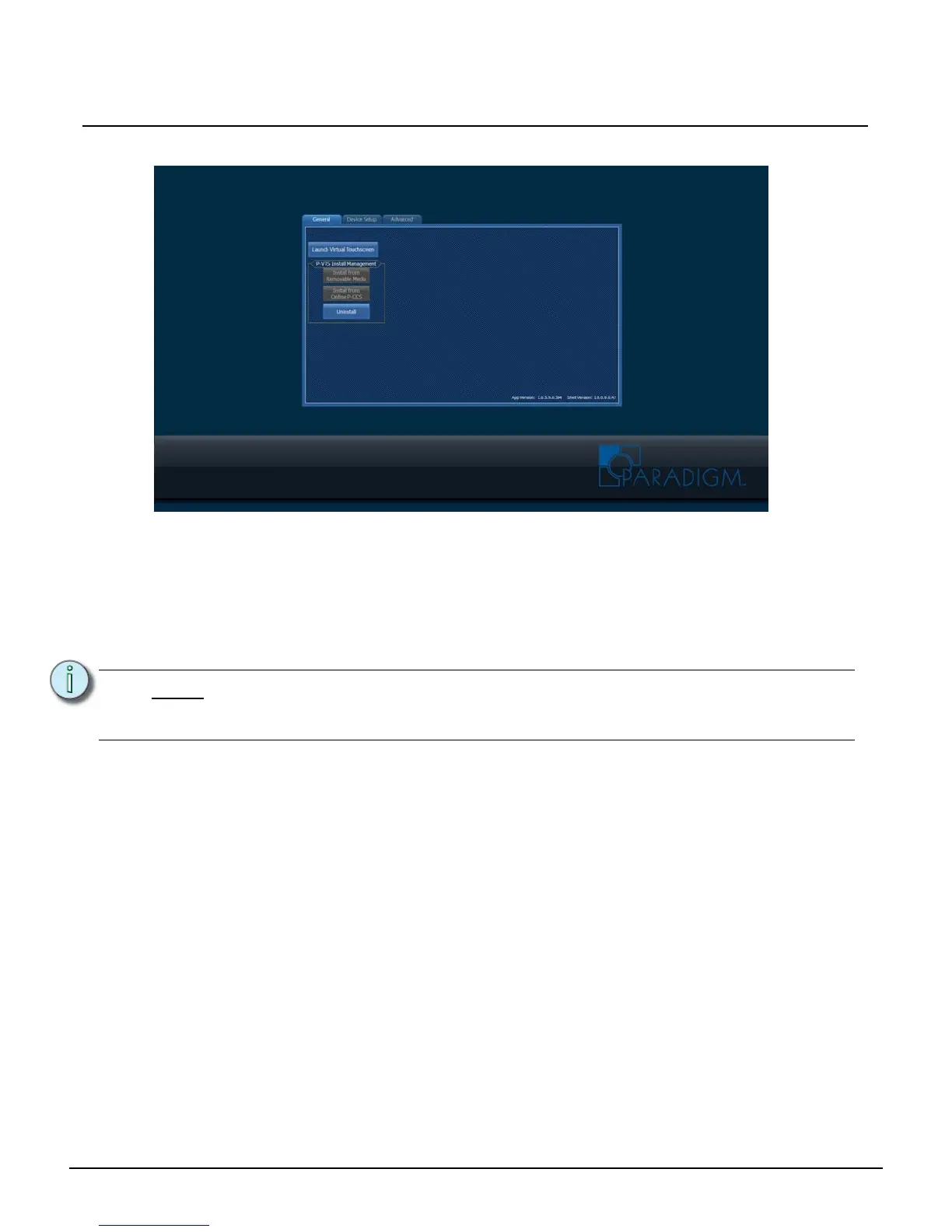 the “App Version”. The “App Version” represented is the version of Paradigm Virtual Touchscreen