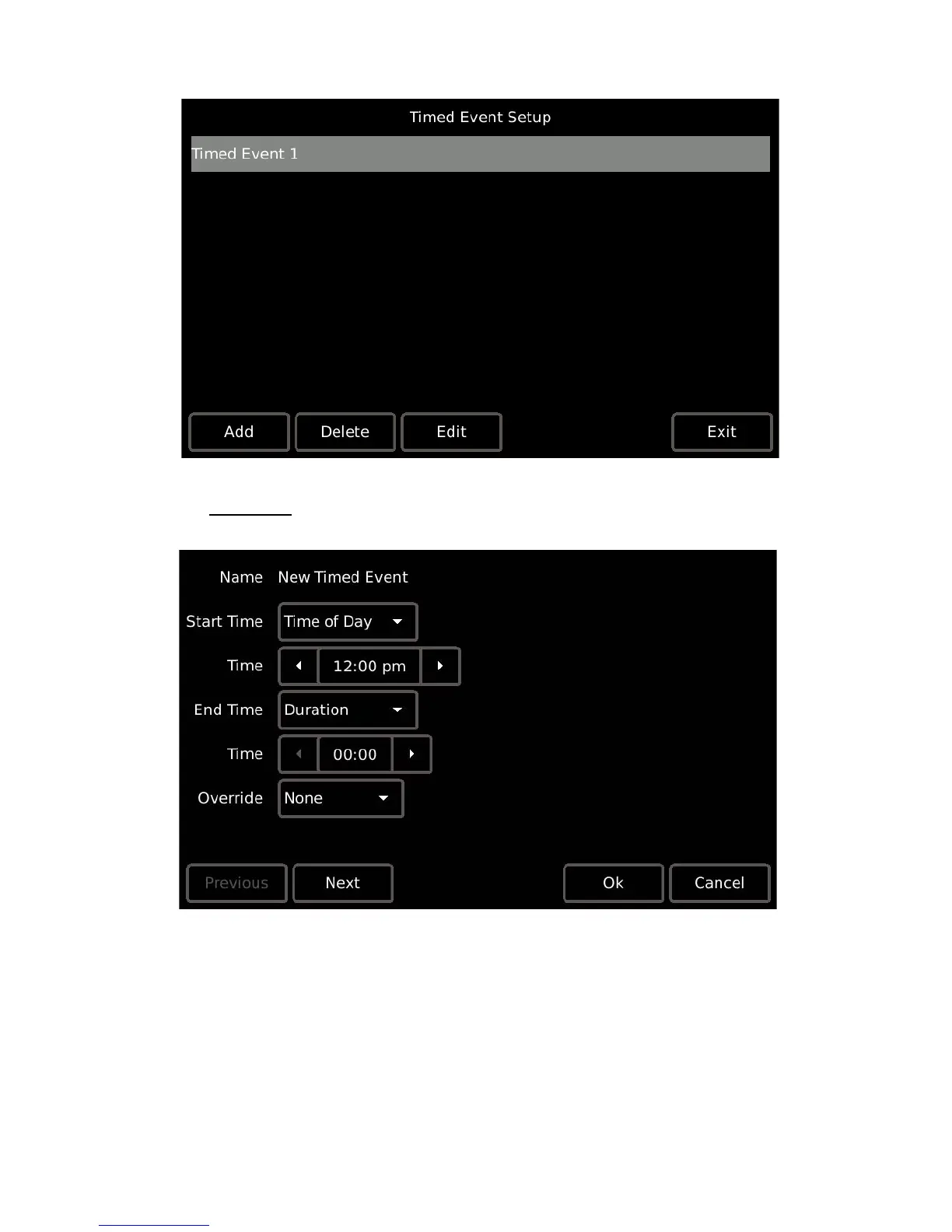 Step 1: Press the [Add] button, a “New Timed Event” configurator displays.