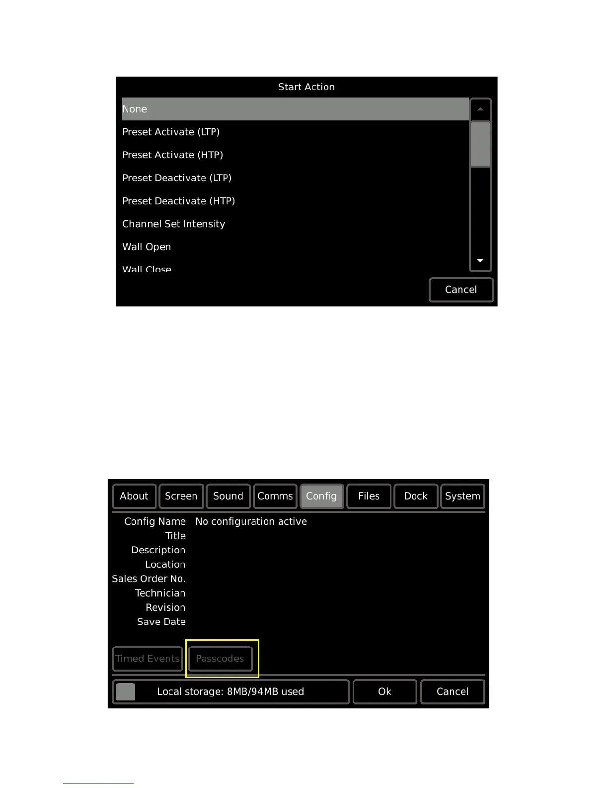 Passcodes that are assigned in ControlDesigner software for the active configuration are