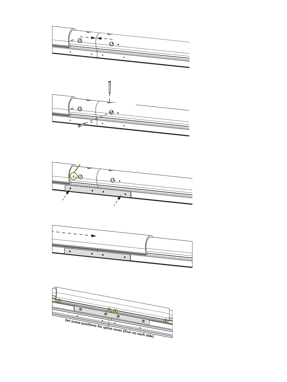 4. Position the splice plates so they align with the four screw holes in the tube extrusion.