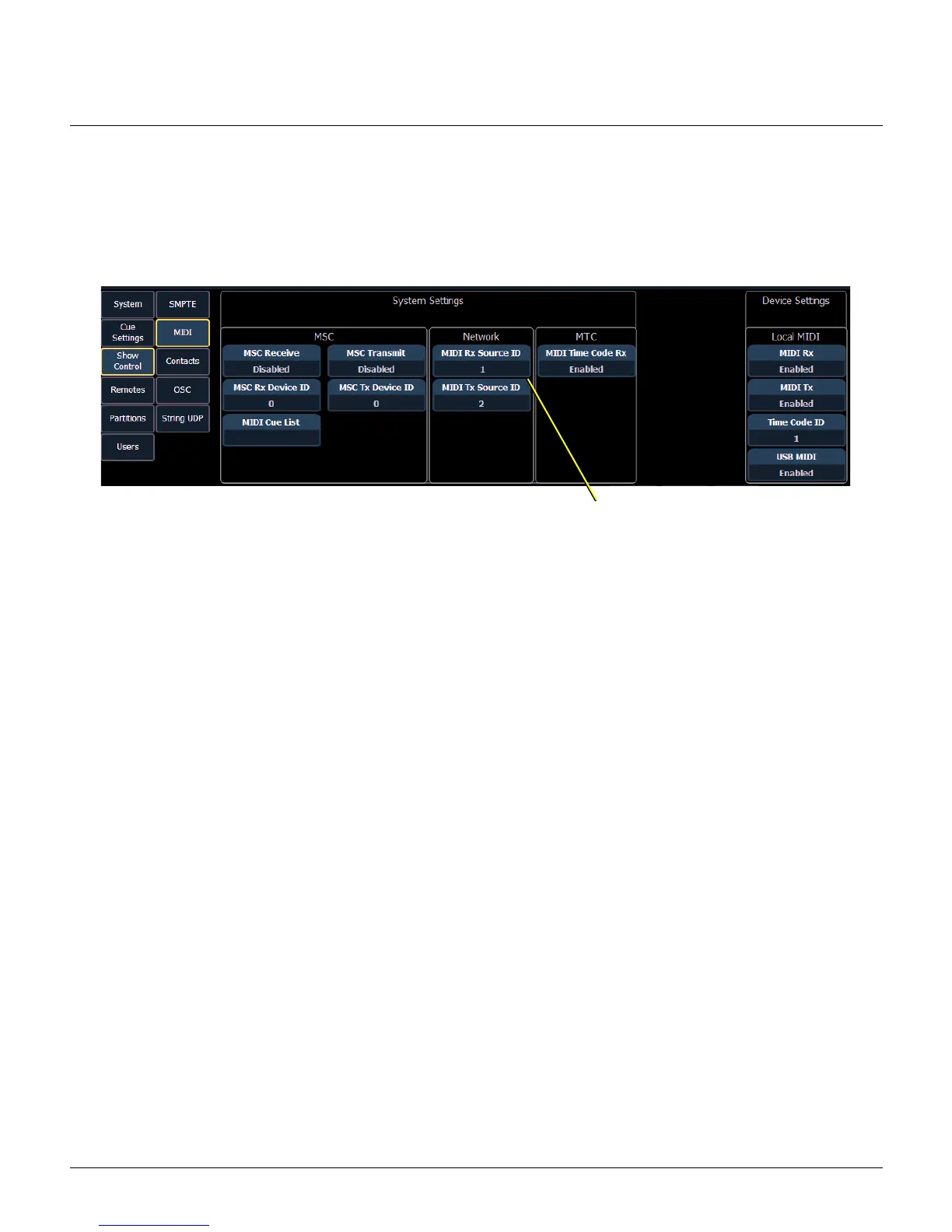 3: On your console, navigate to Setup > System > Show Control > MIDI.