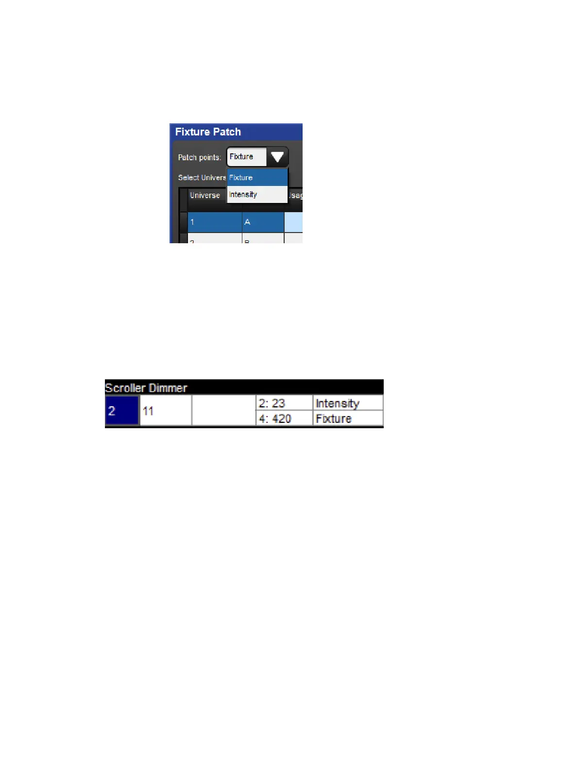 3. Select the Fixture Patch Point (for the scroller) from the drop down list in the top right