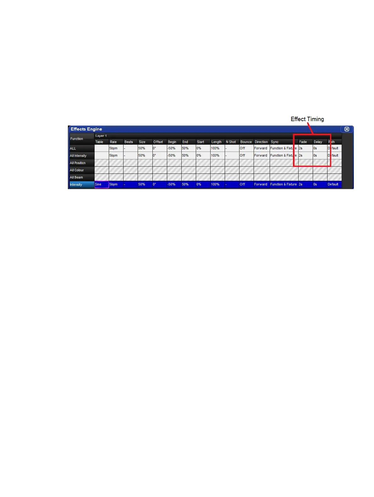 1. Fixture 1 : select the fixtures you want to assign an effect time to, making sure that