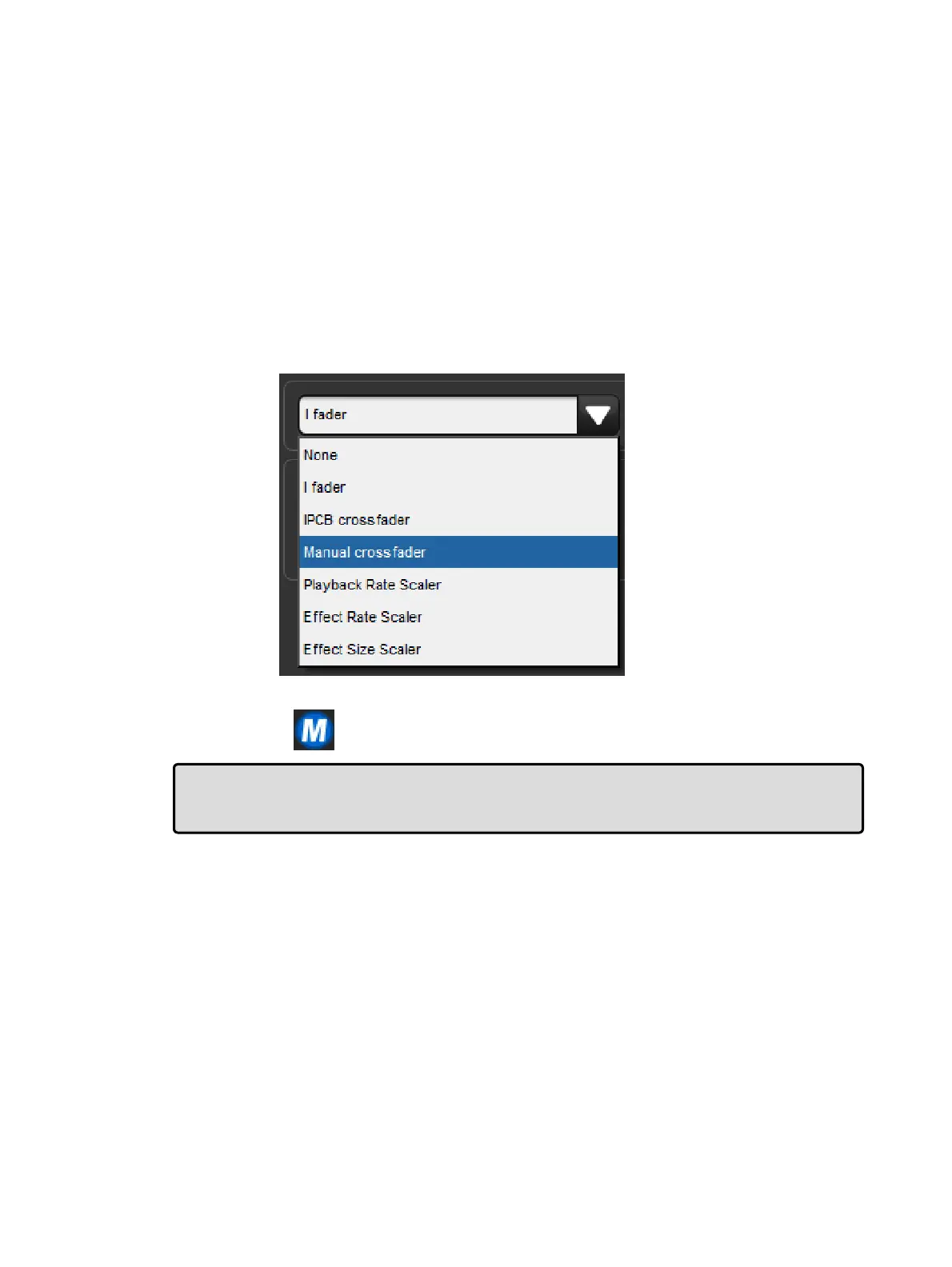 2. Select Manua l Crossfader from the Fader menu:
