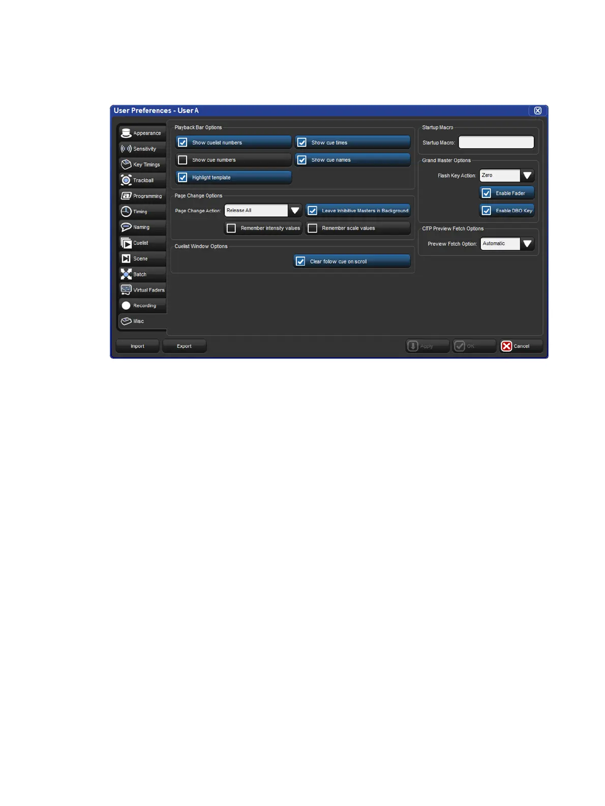 Setup → Preferences → Misc : see image below