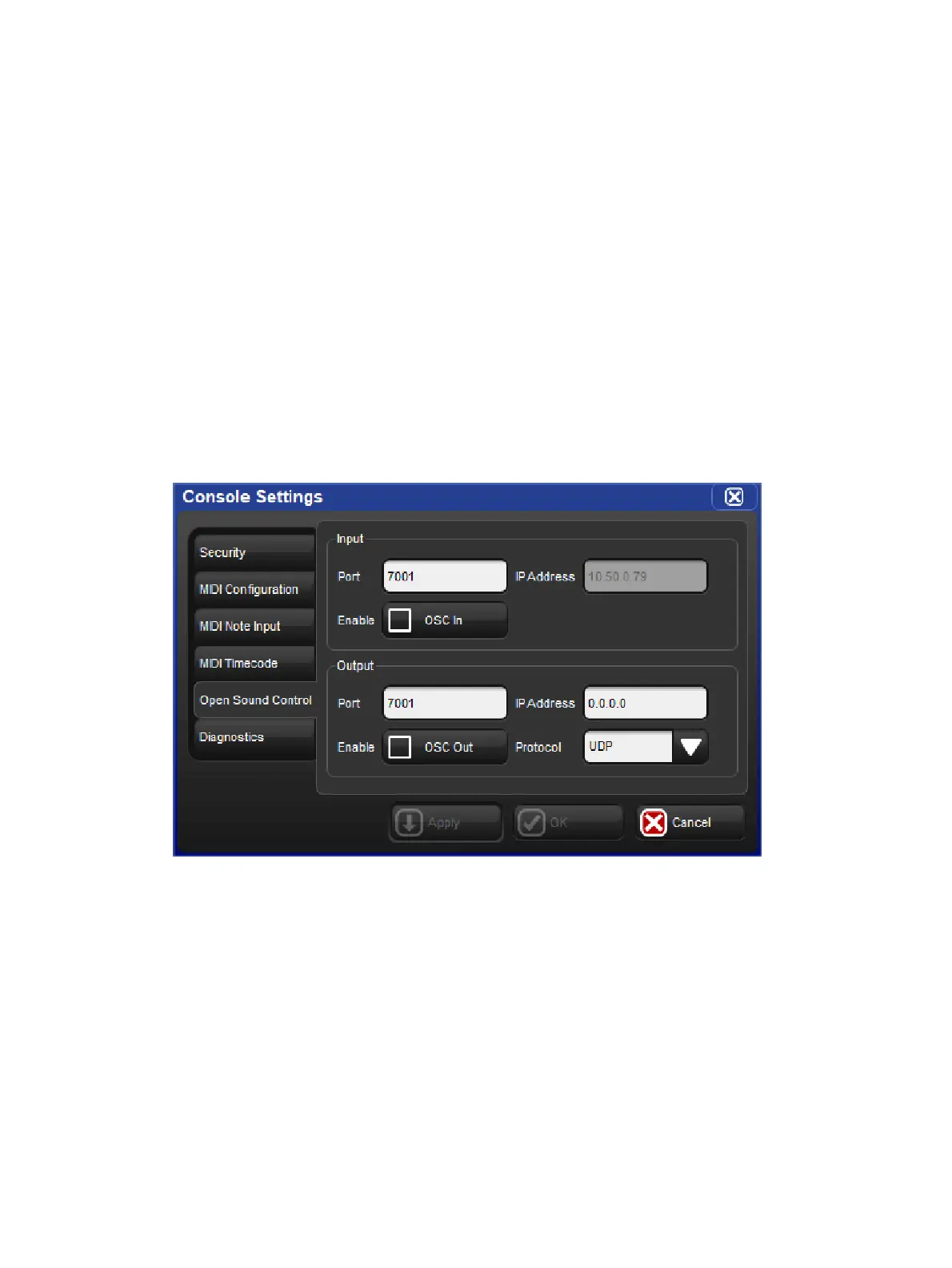 output port of your OSC output device. For your convenience the console's IP address