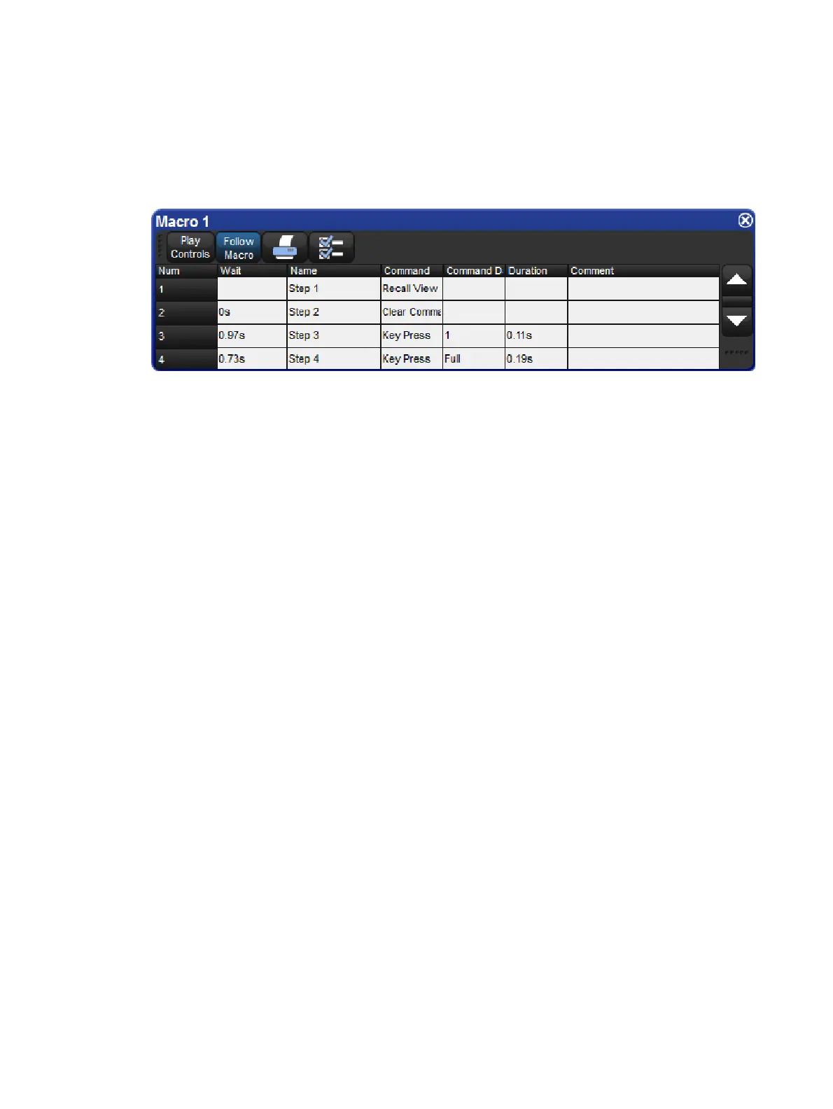 2. Open + [Ma cro 1]: opens the Macro editor for Macro 1.