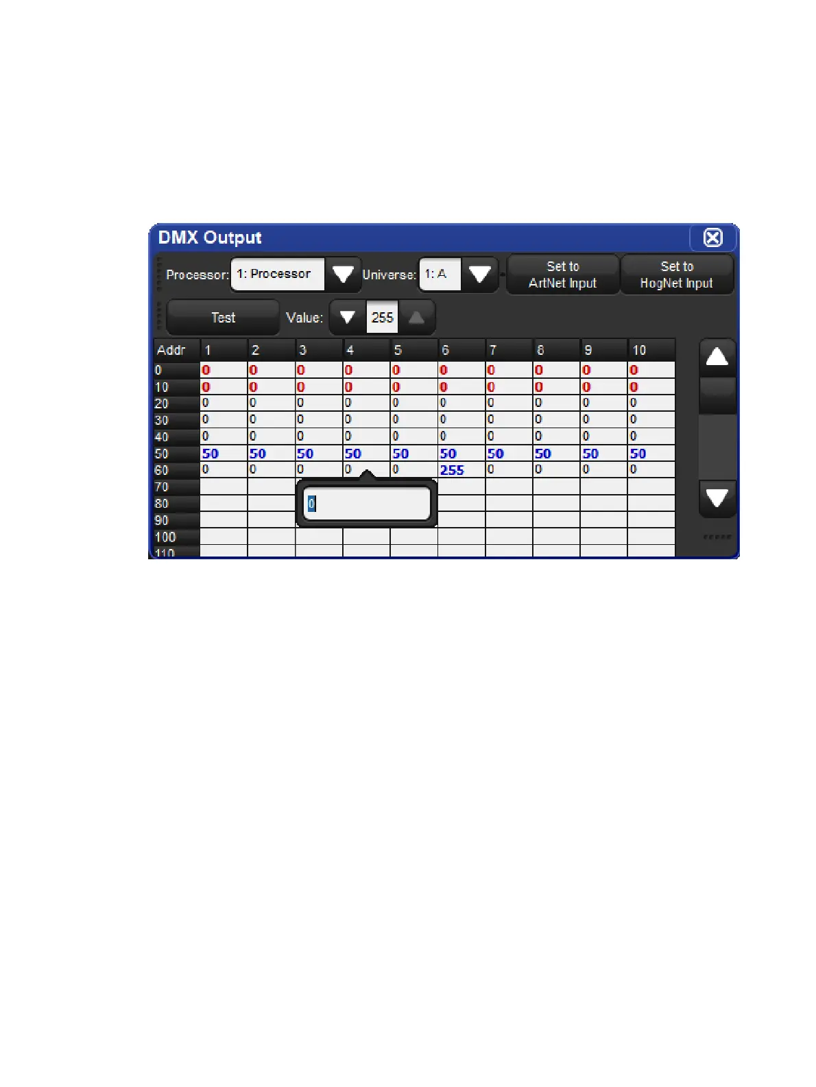 4. Enter a valid DMX value (0 thru 255)