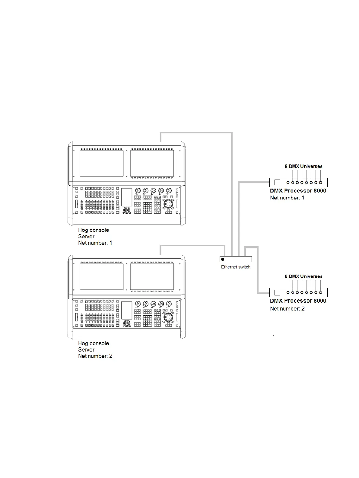 run at least two networked show server consoles in live performance situations in the event