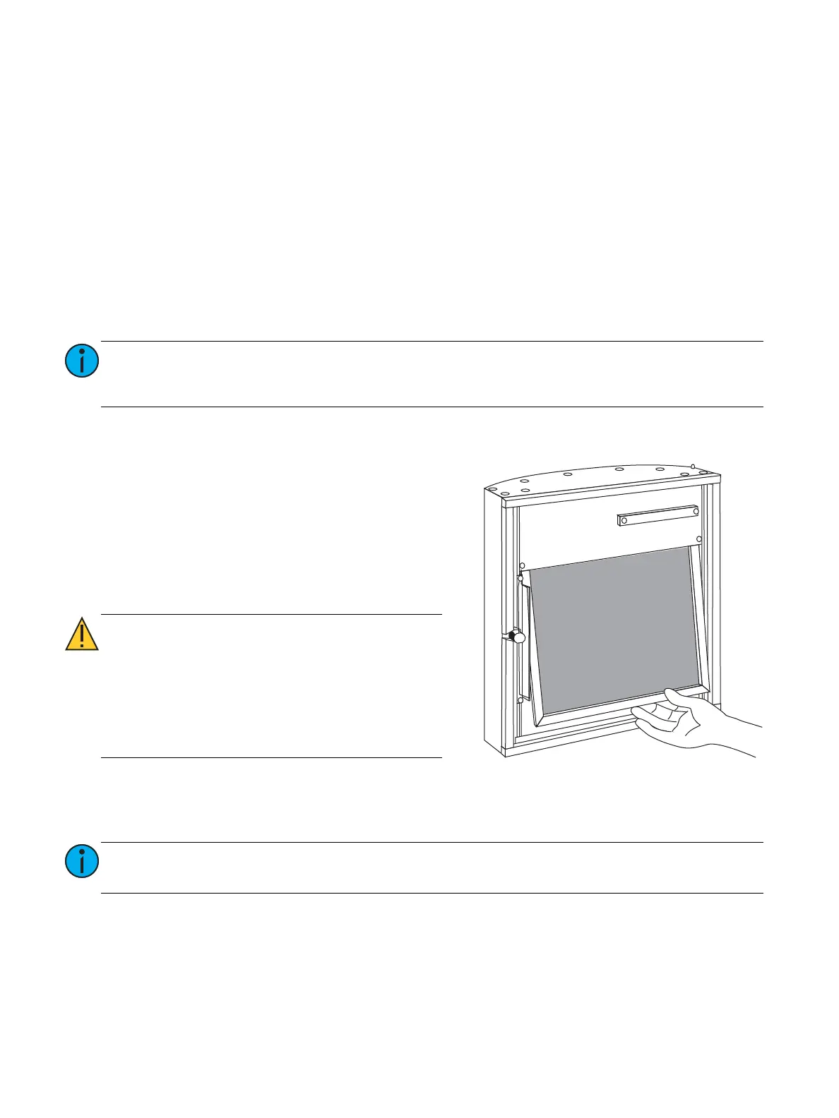 1: Open the dimmer rack door. The air filter is mounted on the inside of the door, secured by a