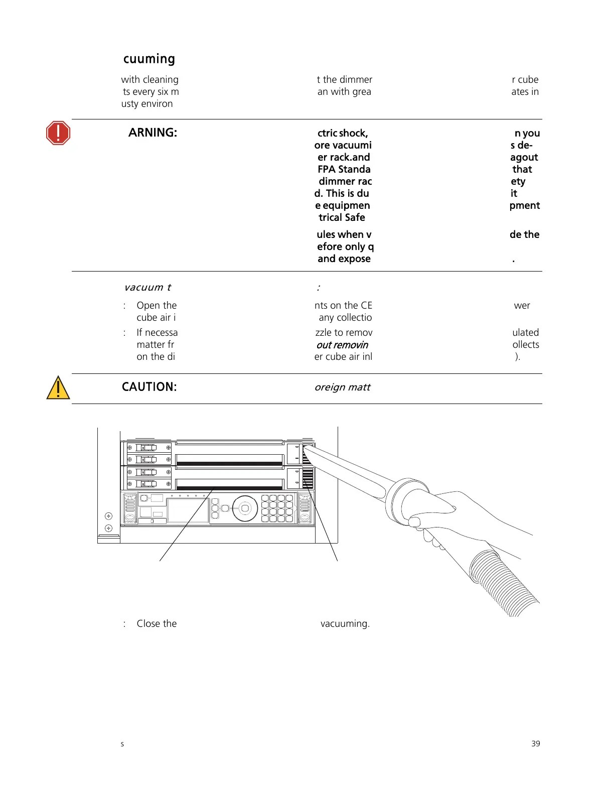 Do not remove dimmer modules when vacuuming. Phase voltages inside the