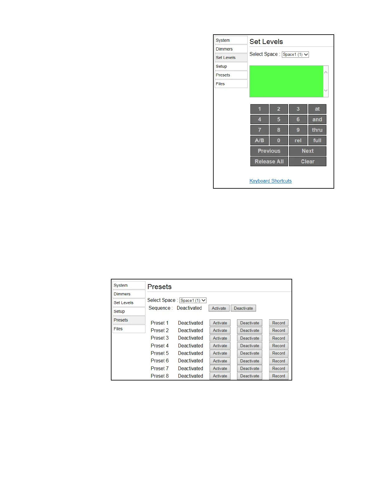 Use this page to activate or deactivate a sequence or activate, deactivate, or record a preset for a