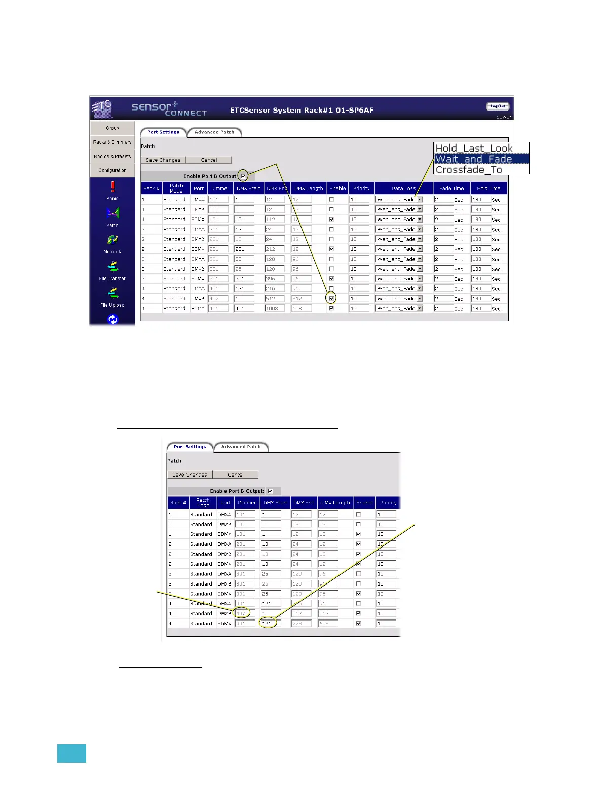 the DMX B port of the last logical rack in the group. DMX Port B Output takes patched
