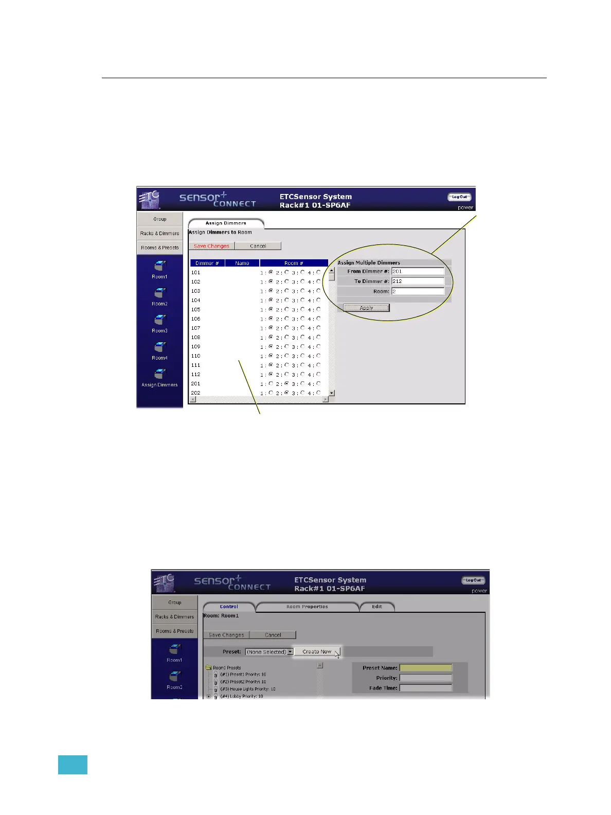 time. Shown below, dimmers 101-112 are assigned to Room1 and dimmers 221-212 are