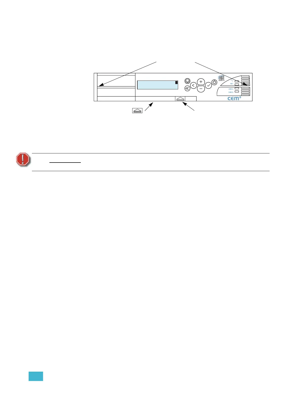 Do not press on the center of the CEM+ to insert it into a rack. Doing so may