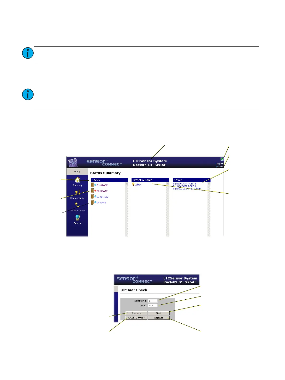 Also from the Group section is the Dimmer Check page. This page provides a quick and easy method