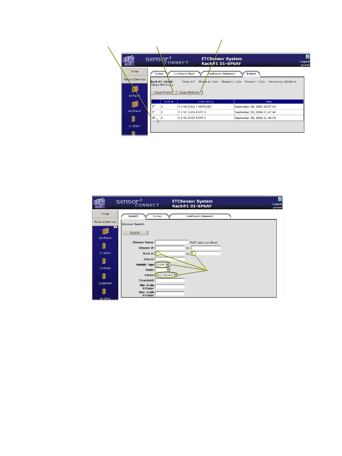 The Search pages (search appears multiple times within the Sensor+ Connect webpages) allow you to