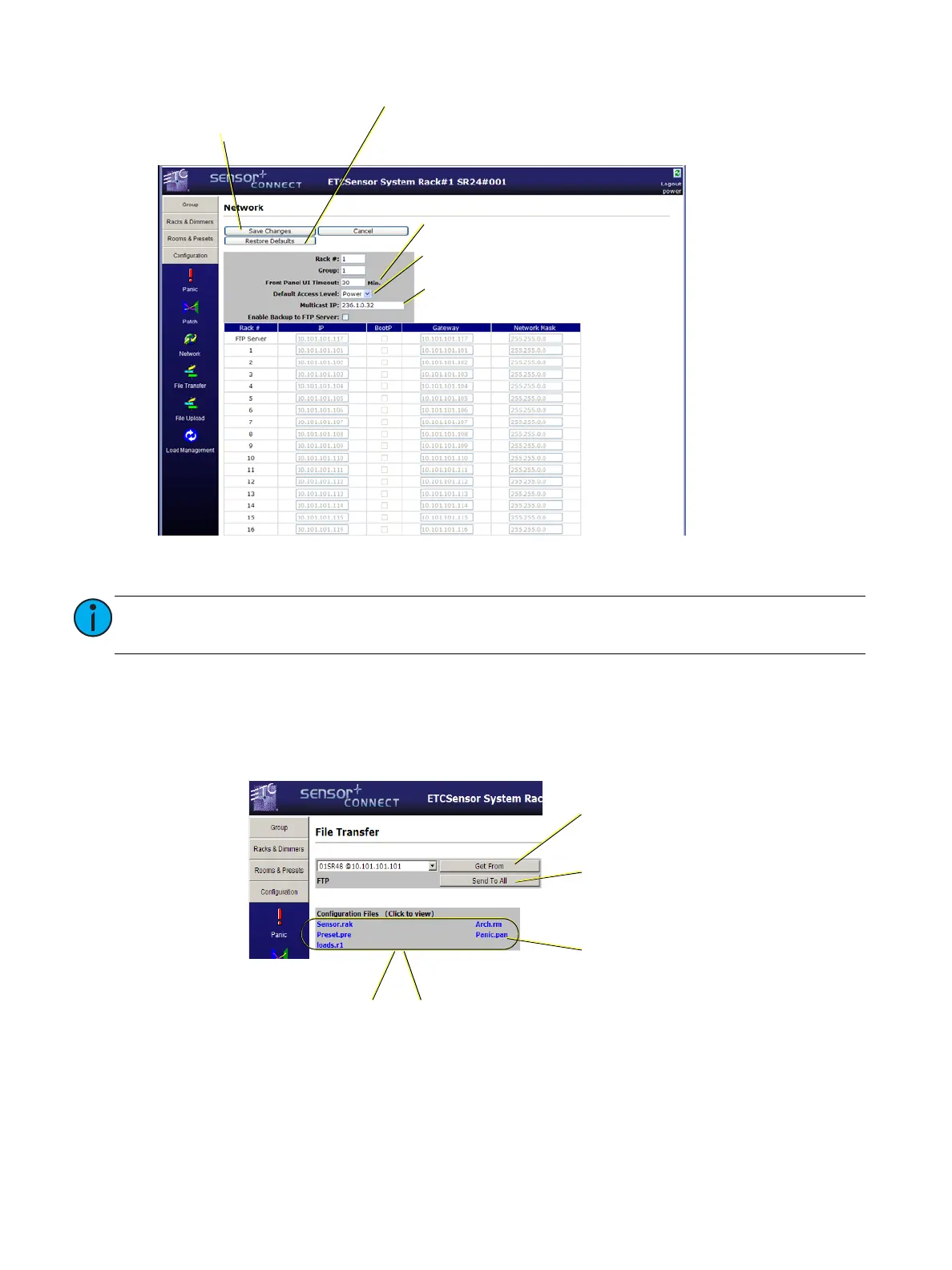 To change the entire network table at once from the web interface, set the Group and Rack numbers
