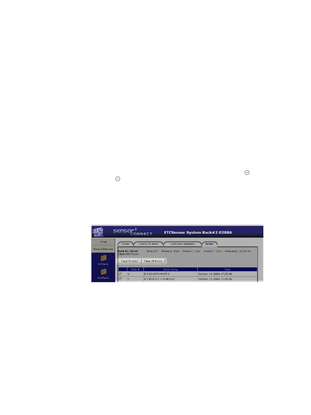 only clear errors from the individual rack’s errors tab webpage. From this page you will have the option