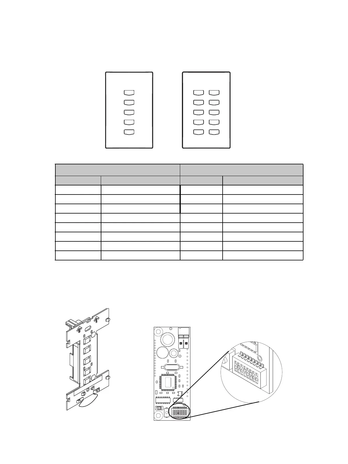 The control electronics (back side) include a set of eight dip switches. Each setting activates standard