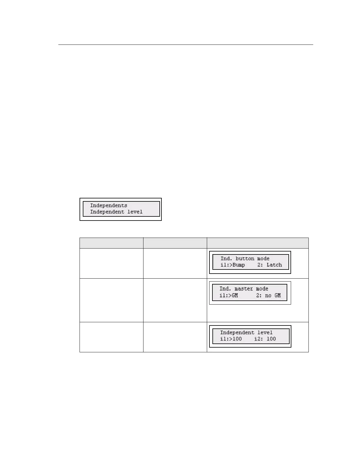 The basic behavior of the buttons and faders are set up in the Independents menu.