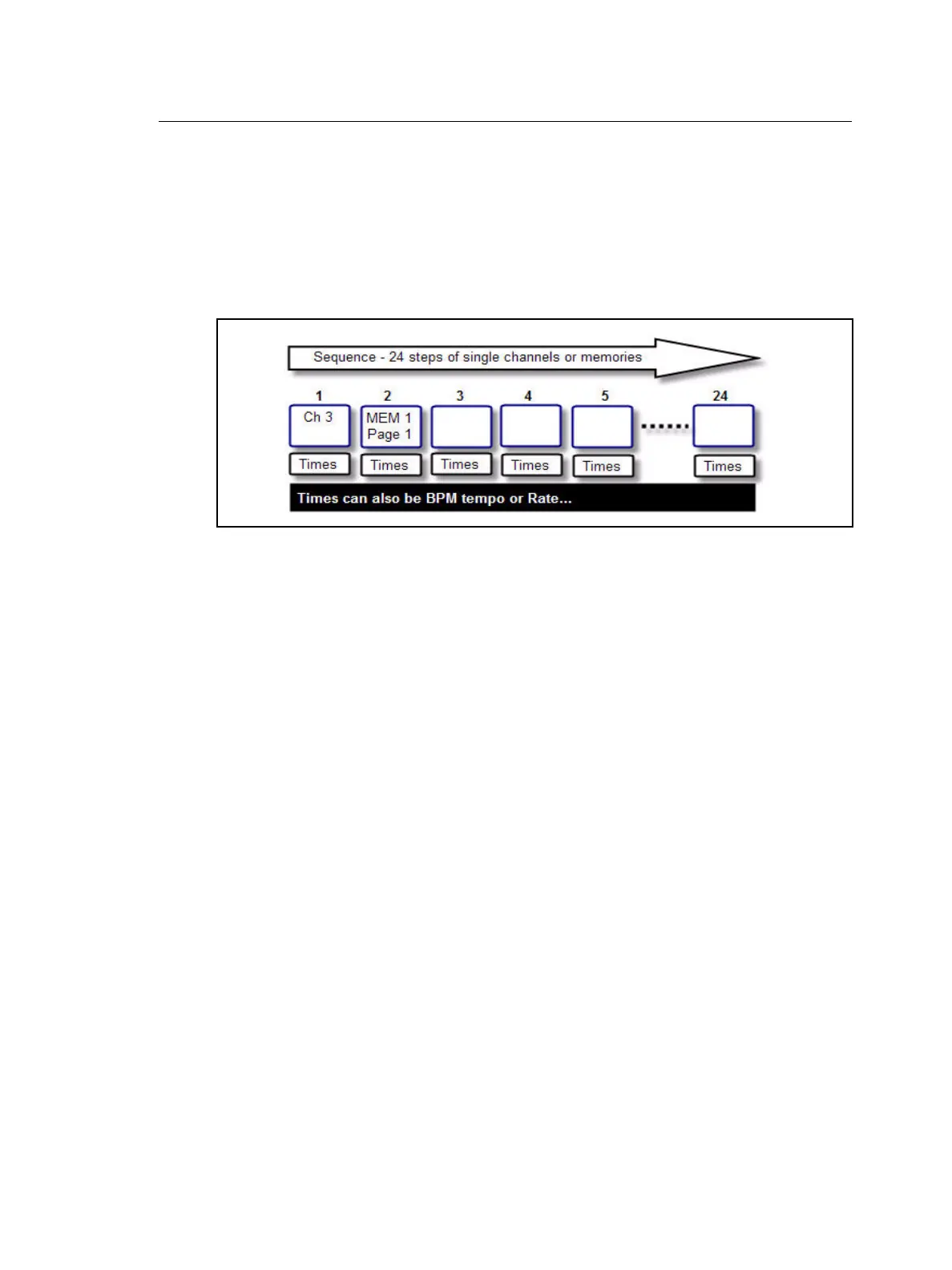 A Sequence is a list of up to 24 steps that can be recorded to and played back from the last
