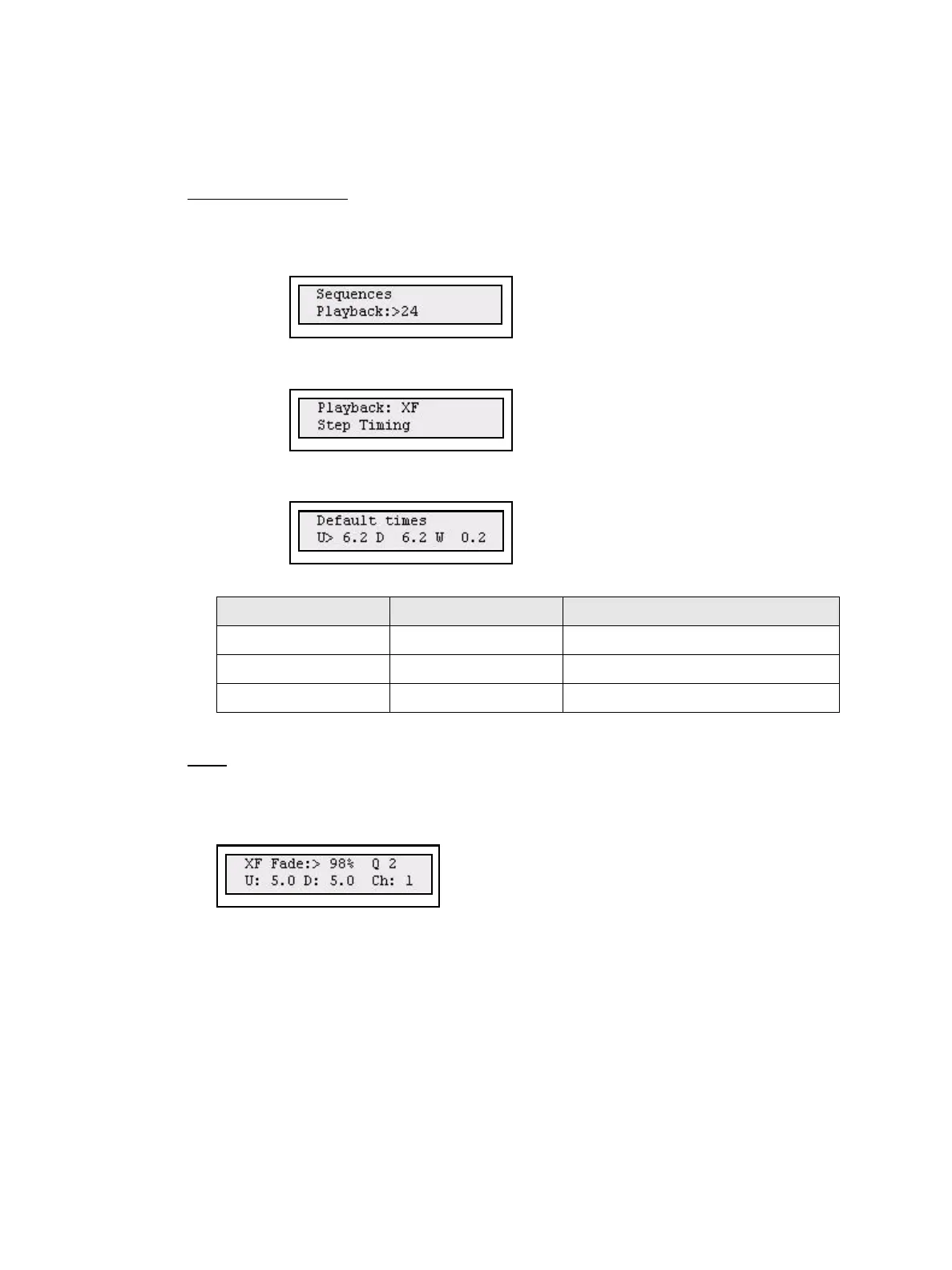 Each Sequence step can have three times, Up, Down and Wait. In addition to these times