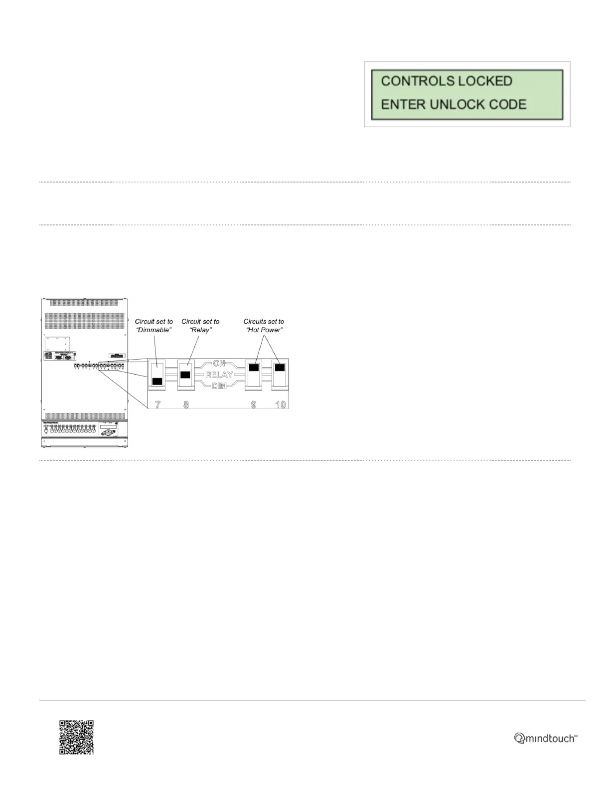 Each circuit has a dedicated, three-position switch that sets the circuit to Dimmable, Relay, or Hot Power (constant