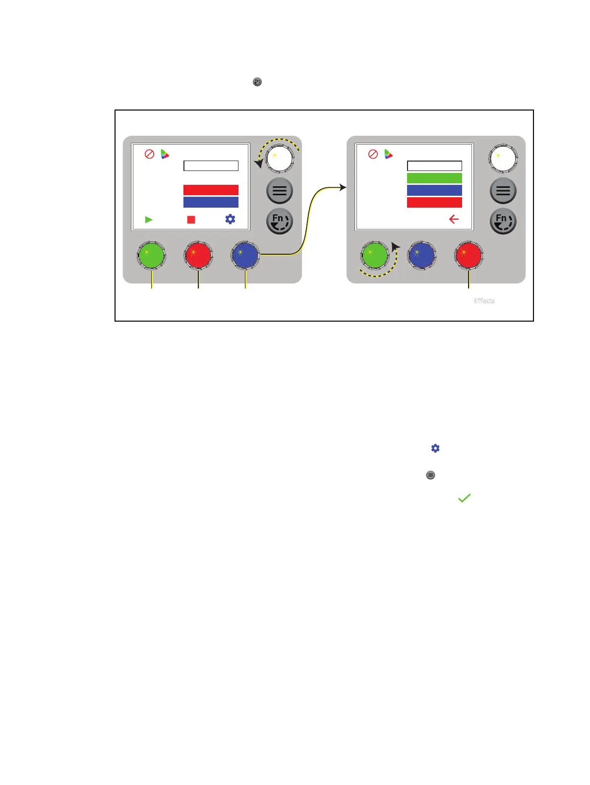 1. Press the Function button ( ), use the Intensity encoder to navigate to Effects Mode, and