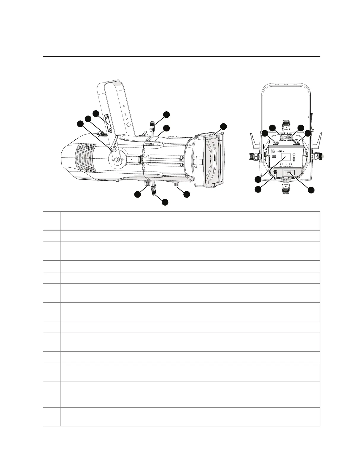J DMX In and DMX Thru connectors: Five-pin XLRconnectors for DMX/RDM in and thru.